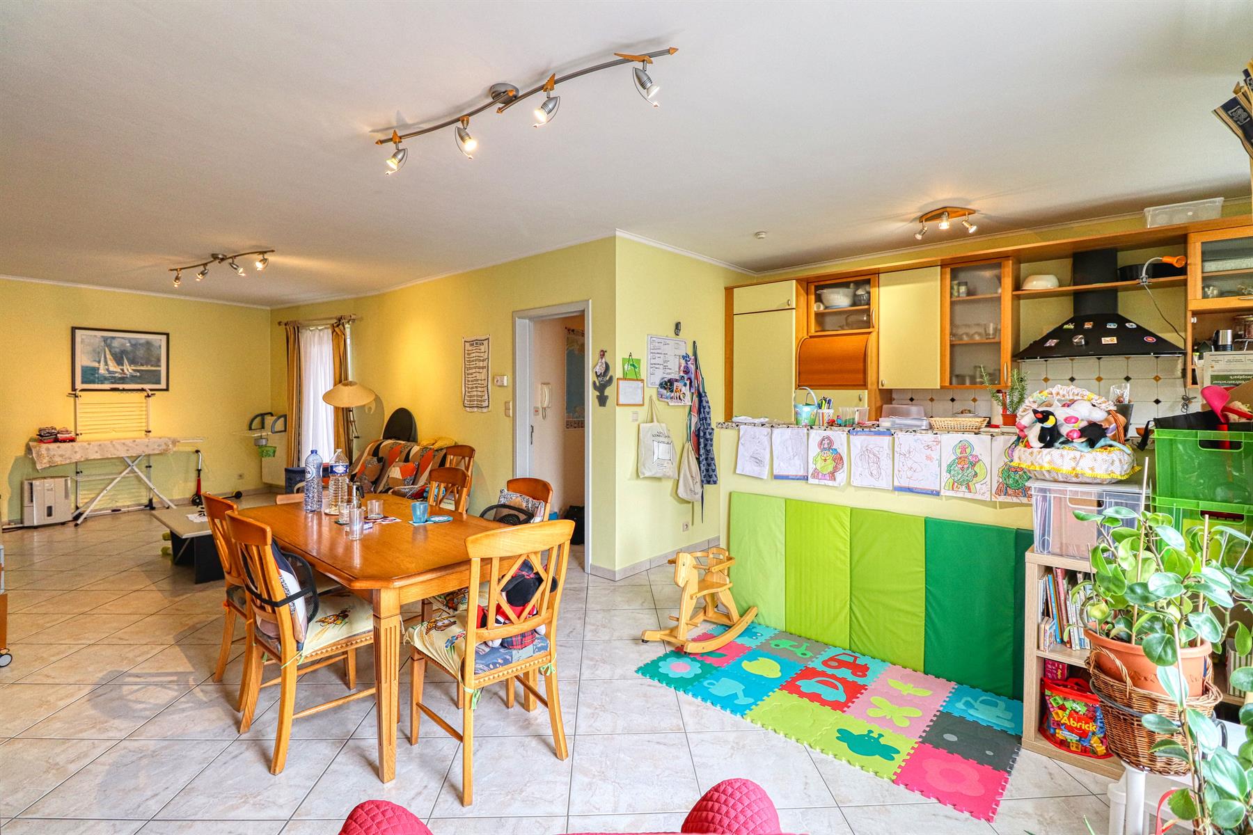 Entree, hal met inbouwkast, een lichte en grote woonkamer van 35 m2 met een terras georiënteerde SUD, een hypergeruste Amerikaanse keuken, 2 CH van 16m2 en 12 m2. Het heeft ook een SDS, een apart toilet en een wasruimte.