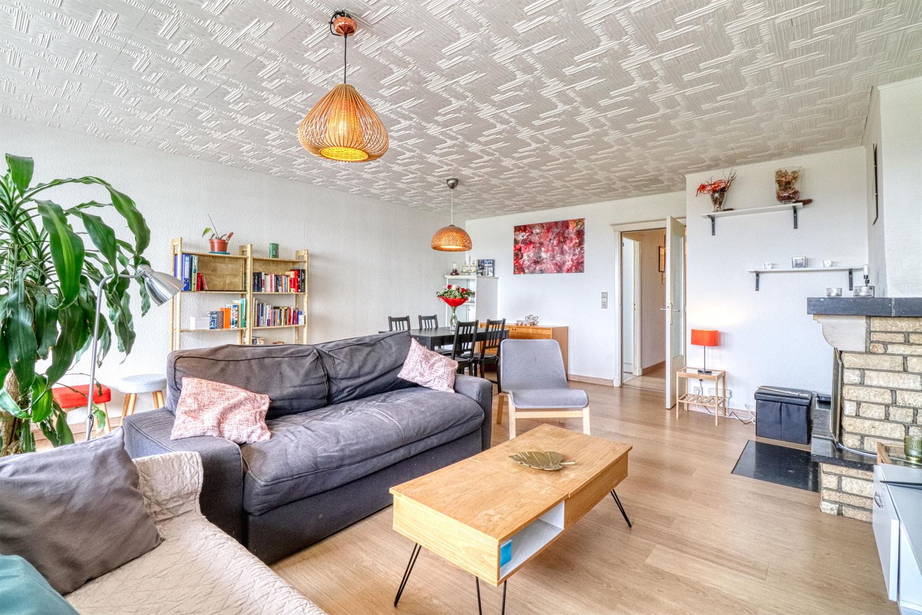 Het bestaat uit een inkomhal met ingebouwde kast, een lichte woonkamer van 33m² met terras op het WEST, een semi-uitgeruste keuken, een slaapkamer van 13m² met een terras van 7m² en een slaapkamer van 10m², een badkamer en een apart toilet. Kelder in de onderbouw.
